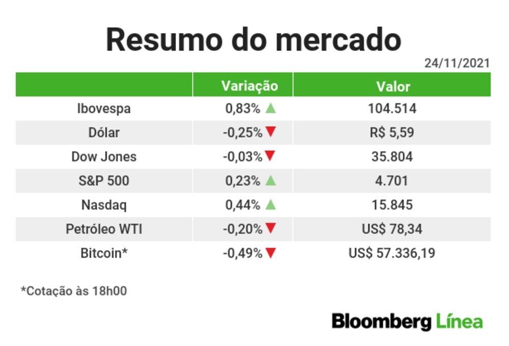 - Bolsa: O Ibovespa subiu 0,83%, a 104.514 pontos;
