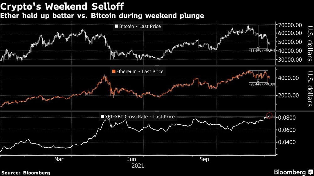 A maior criptomoeda do mercado “teve um pequeno ‘crash’ na manhã de sábado”, escreveu Matt Maley, estrategista-chefe de mercado da Miller Tabak + Co. Ela não conseguiu se recuperar acima de US$ 50.000 e quebrou abaixo de sua linha de tendência das baixas de julho, acrescentou.