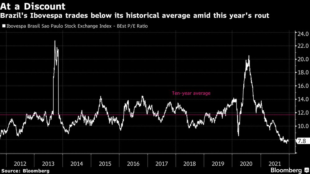 Outros mencionam o valuation descontado do mercado brasileiro. O Ibovespa negocia a cerca de 7,8 vezes o lucro estimado para os próximos 12 meses, bem abaixo da média de 10 anos de 11,7 vezes, de acordo com dados compilados pela Bloomberg. A relação atingiu 7,4 vezes no começo do mês, o menor nível desde 2009.