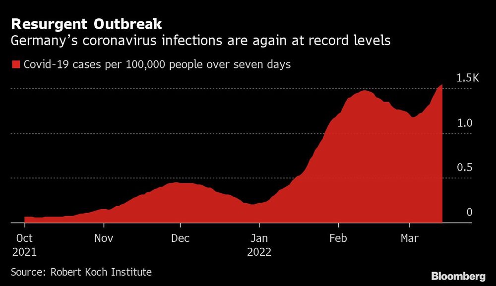 Os casos de covid-19 subiram para 1.543 em cada 100 mil pessoas em sete dias, continuando seu aumento constante desde o início de março, segundo dados do instituto de saúde pública RKI.