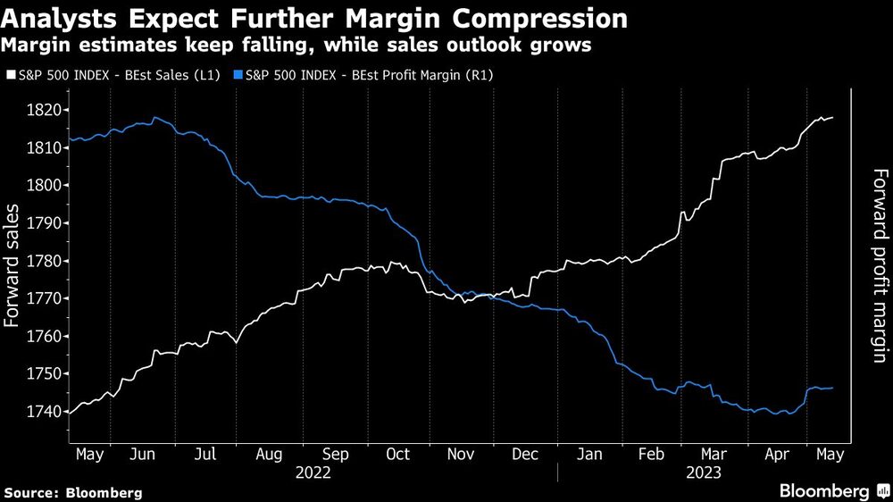 O estrategista do Morgan Stanley, Michael Wilson, prevê “margem negativa adicional” nos próximos meses, com os custos trabalhistas sendo um grande vento contrário e uma economia mais fraca prejudicando o poder de precificação das empresas.
