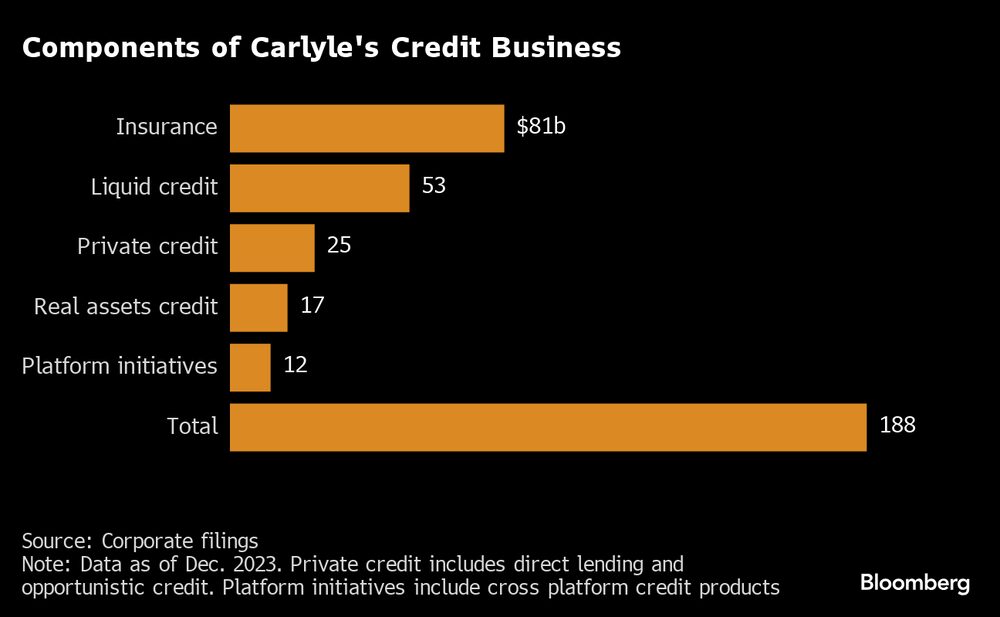 Embora o Carlyle tenha aumentado seu negócio de crédito em cerca de seis vezes, que chegou a US$ 190 bilhões nos últimos sete anos, a casa continua sendo a menor operadora de crédito entre as cinco principais gestoras de ativos alternativos dos EUA.