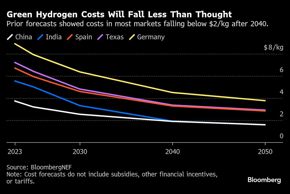 A BNEF revisou recentemente sua previsão para descobrir que o gás permanecerá caro nas próximas décadas, o que pode levá-lo a custar US$ 5,09 por quilograma. É por isso que “continuamos a ver alguns dos desafios no setor”, disse Dhanpal Jhaveri, CEO da Eversource Capital.