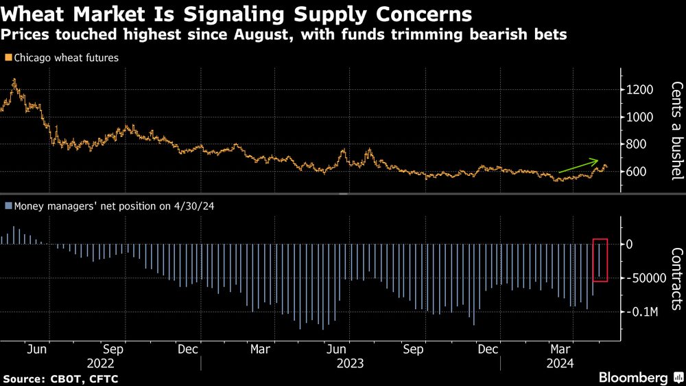 As preocupações com as culturas estão se refletindo nos preços, com os gestores de fundos agora sendo os menos pessimistas desde julho. Mas as coisas podem mudar antes do início das primeiras colheitas do hemisfério norte em cerca de quatro semanas.
