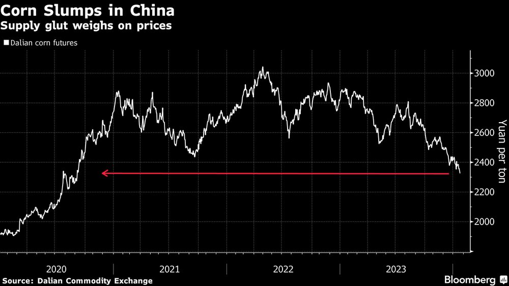 Bloomberg — Os preços do milho na China estenderam sua queda para o nível mais baixo em mais de três anos, devido à oferta farta, mesmo depois que a estatal do setor no país se comprometeu a comprar o grão para elevar as reservas.