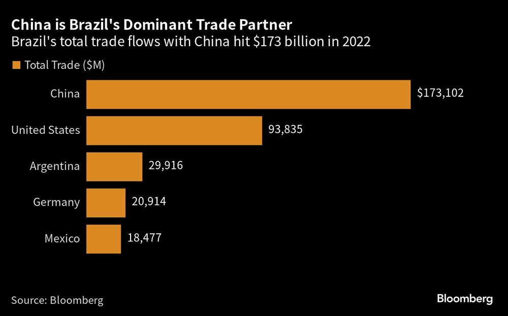 Para o Brasil, os riscos são enormes. A China é hoje, de longe, o maior parceiro comercial do país, respondendo por quase um terço das exportações brasileiras. O comércio entre os dois aumentou para US$ 173 bilhões em 2022, quase o dobro dos US$ 94 bilhões entre Brasil e EUA, segundo dados compilados pela Bloomberg.