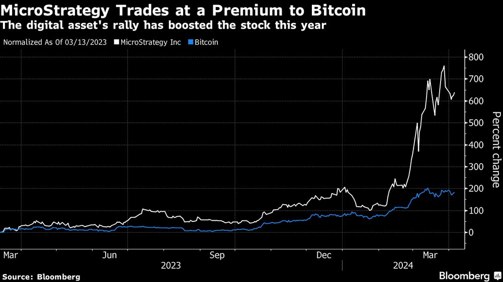 A valorização de mais de 50% do próprio bitcoin para máximas históricas neste ano, acima do patamar de US$ 70 mil, rewforçou o desempenho da MicroStrategy, dada a sua estratégia de levantar capital para comprar mais do ativo digital.