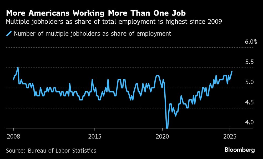 O número de americanos que têm vários empregos subiu para um recorde de quase 8,9 milhões.