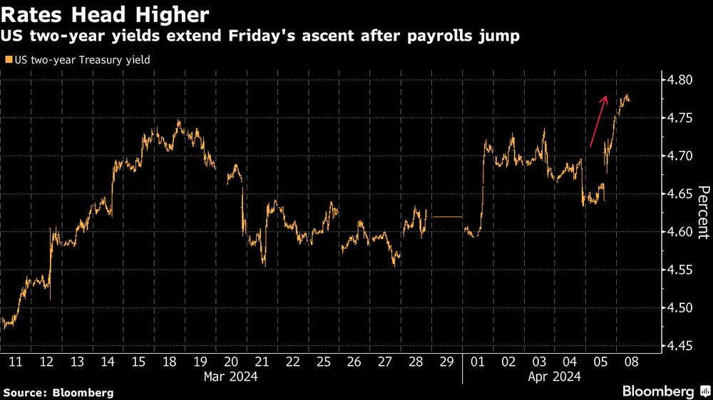 Rendimento dos títulos de dois anos amplia ganhos após payroll