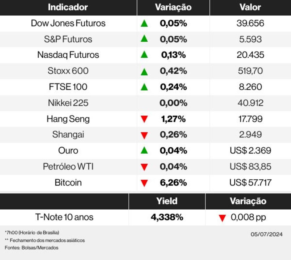 Na Europa, as ações sobem pelo terceiro dia, enquanto os futuros dos EUA apontam para uma abertura estável quando Wall Street retornar do feriado de Dia da Independência, que deixou as bolsas fechadas na quinta-feira (4).
