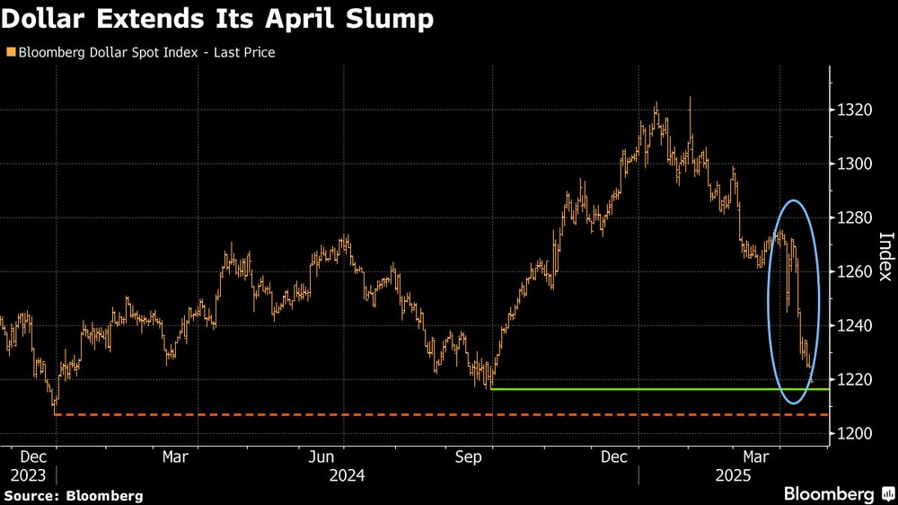 O Bloomberg Dollar Spot Index caiu 0,9% na segunda-feira. Todas as moedas do Grupo dos 10 se valorizaram em relação ao dólar. O salto do iene pesou sobre os índices de ações no Japão, empurrando o Nikkei 225 para baixo em 1,3%.
