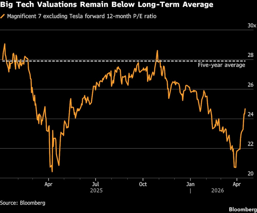 A recuperação ocorre após um raro período de fraqueza para o grupo, que liderou o S&P 500 durante a maior parte dos três anos de alta do mercado devido à euforia da IA e ao forte crescimento dos lucros.