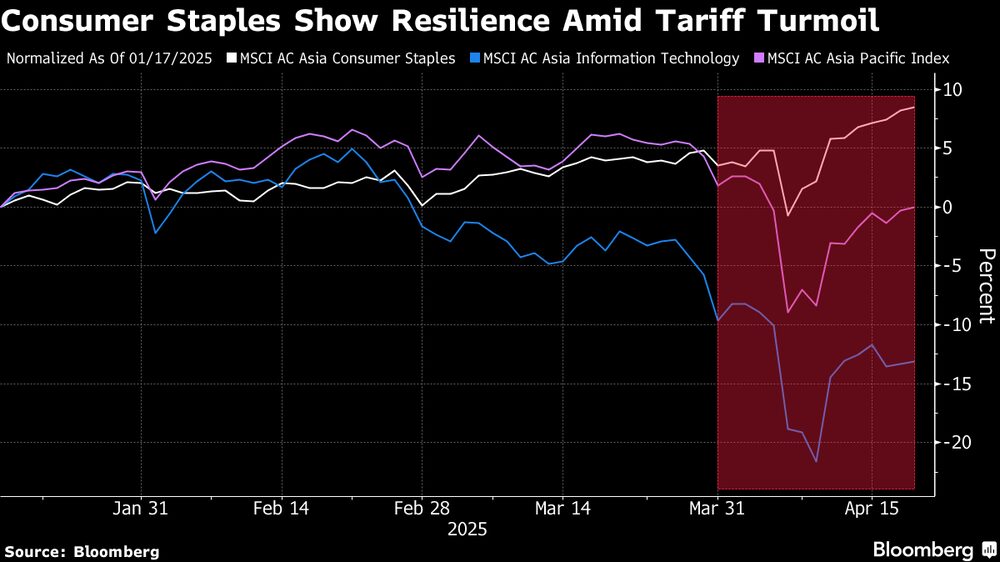 O MSCI Asia Pacific Consumer Staples Index subiu 5% desde 2 de abril, o melhor desempenho entre 11 setores e superando a queda de 2,5% do índice de referência mais amplo.