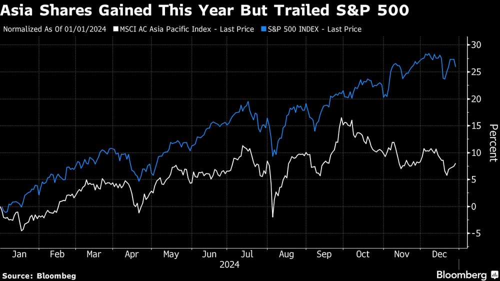 As ações da região avançaram em 2024, uma vez que os bancos centrais flexibilizaram a política monetária e as ações de tecnologia se recuperaram em meio ao otimismo em relação à inteligência artificial.