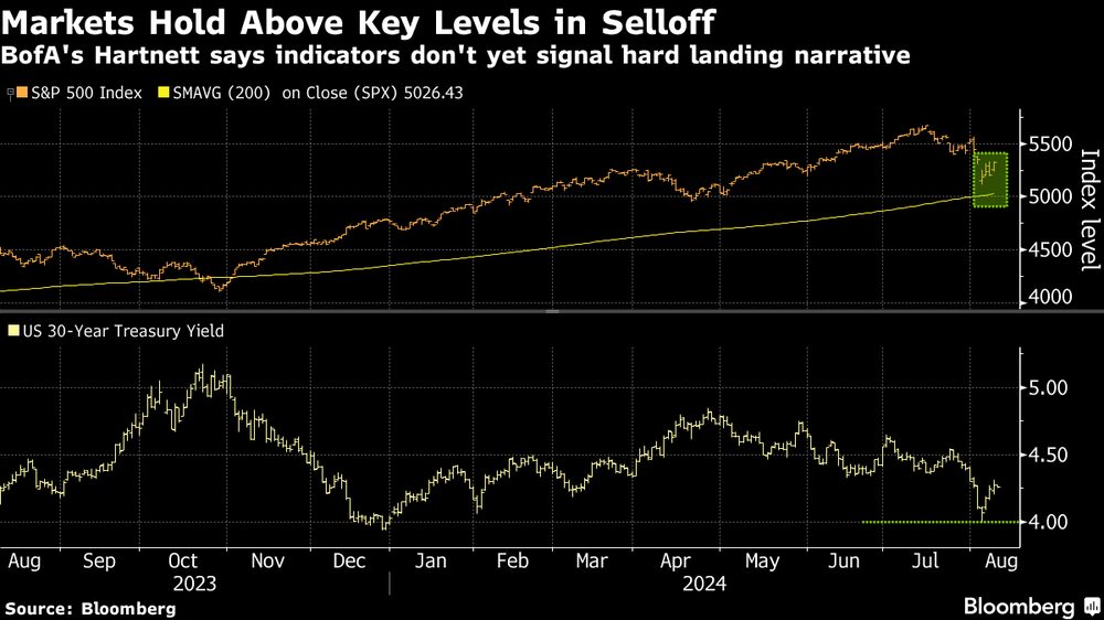“Os níveis técnicos que mudariam a narrativa de Wall Street de um soft landing para um hard landing não foram rompidos”, escreveu Hartnett em uma nota a clientes.
