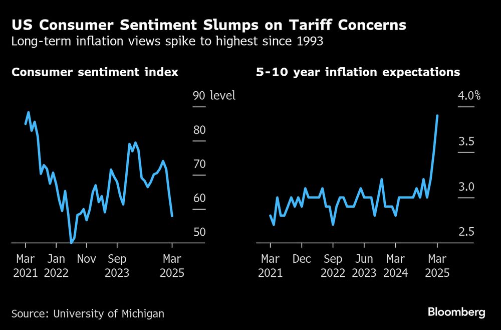 Mesmo que o presidente do Federal Reserve tenha elogiado a resiliência dos EUA, a inquietação provocada pela rápida escalada da guerra comercial do presidente Donald Trump fez com que as ações caíssem no último mês. Os rendimentos dos títulos também caíram, assim como o sentimento do consumidor, à medida que aumentam as preocupações com as perspectivas econômicas.