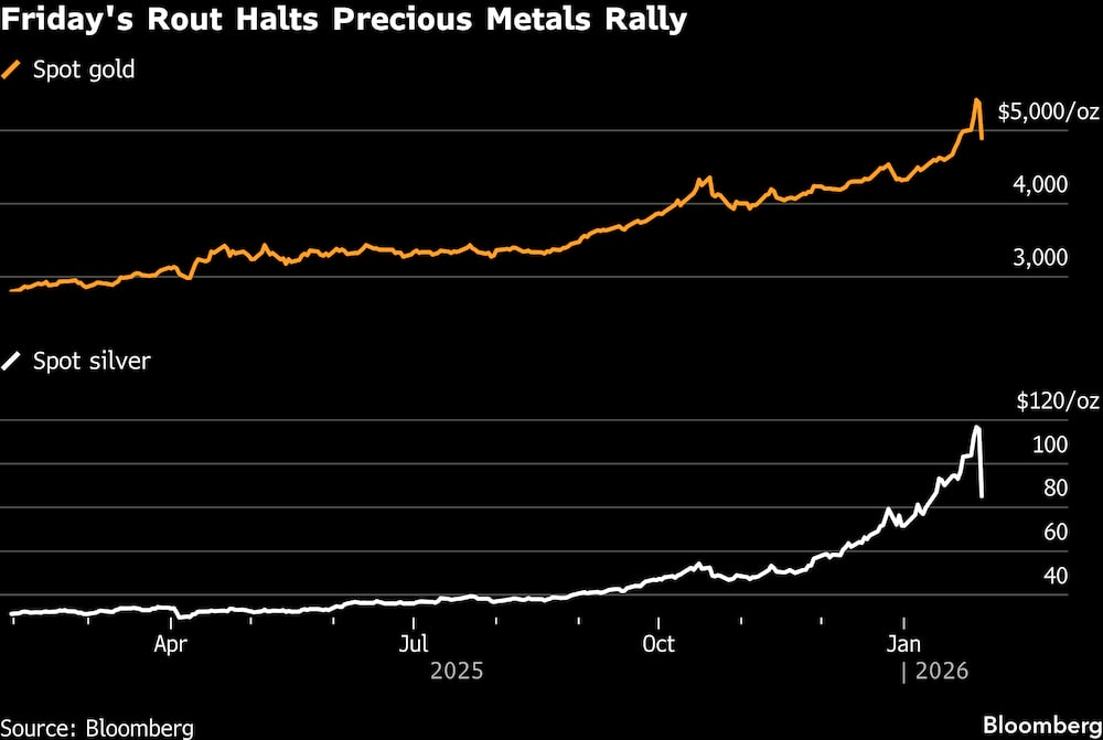 “Parabólico”, “frenético” e “impossível de operar” foram algumas das descrições do mercado na sexta-feira, escreveu Nicky Shiels, chefe de estratégia de metais da MKS PAMP SA. Janeiro de 2026, afirmou, entrará para a história como “o mês mais volátil da história dos metais preciosos”.