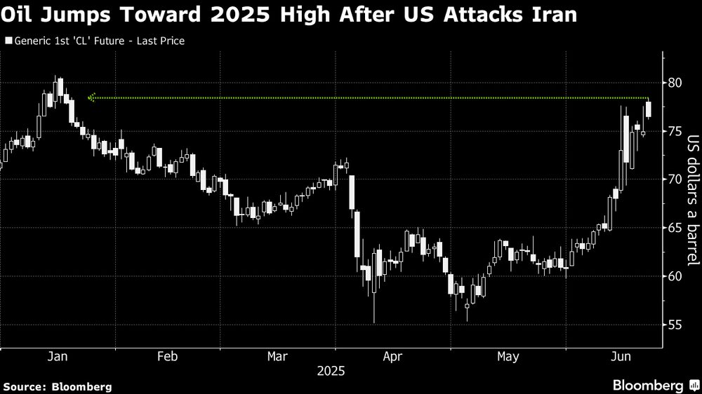 Bloomberg — Na abertura dos mercados nesta manhã de segunda-feira (23) no Oriente, investidores reagiram aos ataques lançados pelos EUA contra as instalações nucleares do Irã no fim de semana: a escalada acentuada dos ataques fez com que os preços do petróleo subissem e o dólar ficasse mais alto no início das negociações.