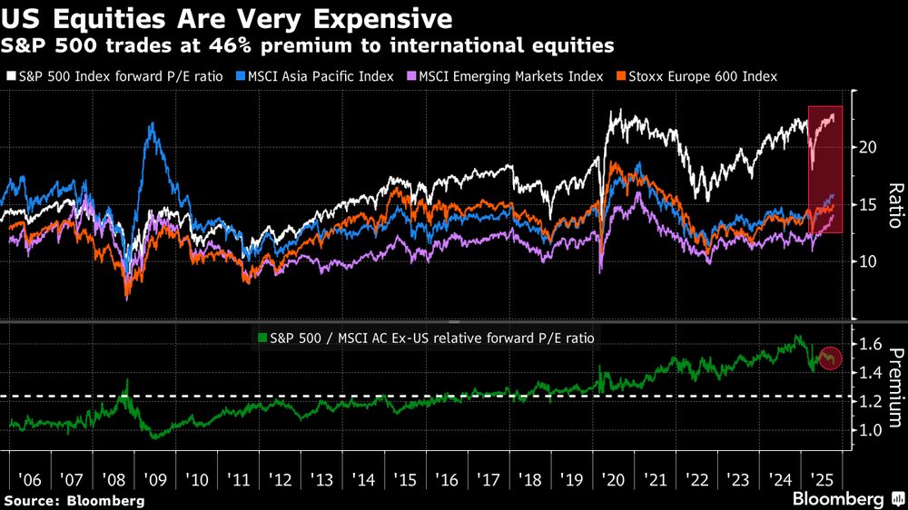 “Os investidores deveriam estar se reequilibrando, tirando lucros de sua alocação nos EUA e aumentando a exposição à Europa, Ásia e mercados emergentes”, disse Kristina Hooper, estrategista-chefe de mercado do Man Group, o maior fundo de hedge de capital aberto do mundo. “Os EUA continuarão a ficar atrás de outros mercados.”