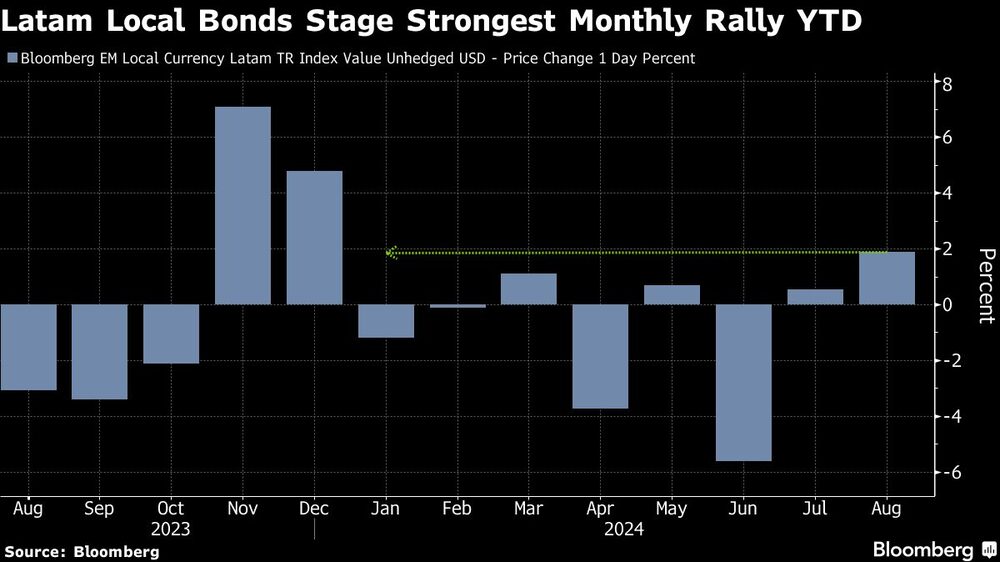 O movimento ajudou um índice de bonds em moeda local da América Latina a ter ganhos de 1,9% até agora em agosto, no caminho para o melhor avanço desde dezembro.
