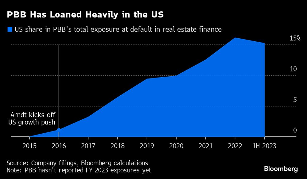 A expansão do PBB no mercado de escritórios dos EUA "aconteceu muito tarde" no ciclo, disse o investidor ativista Petrus Advisers em uma carta pública endereçada ao presidente do PBB, Louis Hagen, em dezembro. O resultado dessa aposta tem sido "desastroso", com as provisões de crédito aumentando.
