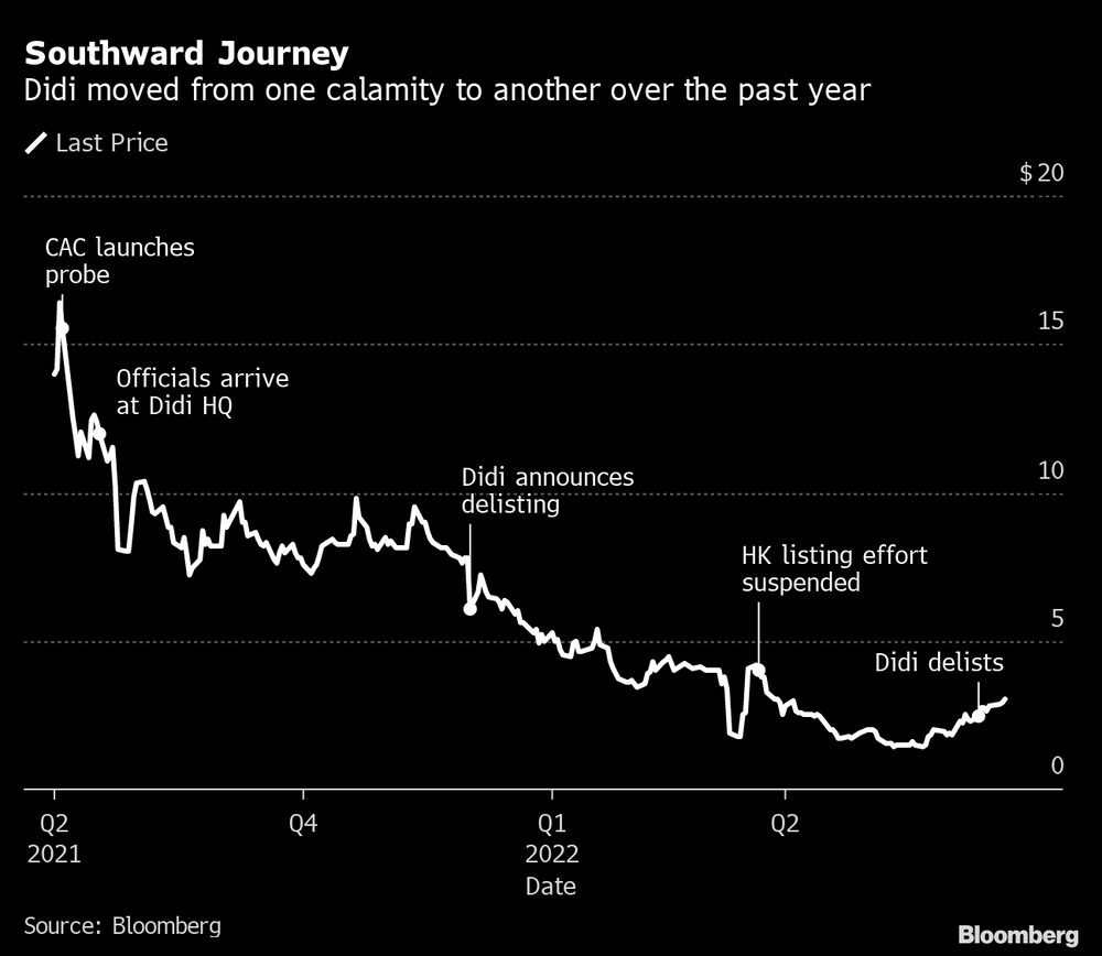 Outrora aclamada como campeã nacional por expulsar a Uber (UBER) da China, os negócios da Didi sofreram um golpe depois que Pequim reprimiu suas práticas de compartilhamento de dados.
