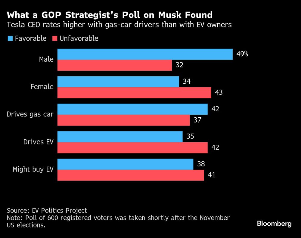 Um estrategista republicano que defende um apoio bipartidário aos veículos elétricos no país descobriu que Musk agora é mais popular entre as pessoas que dirigem carros a gasolina do que entre as que dirigem carros elétricos.