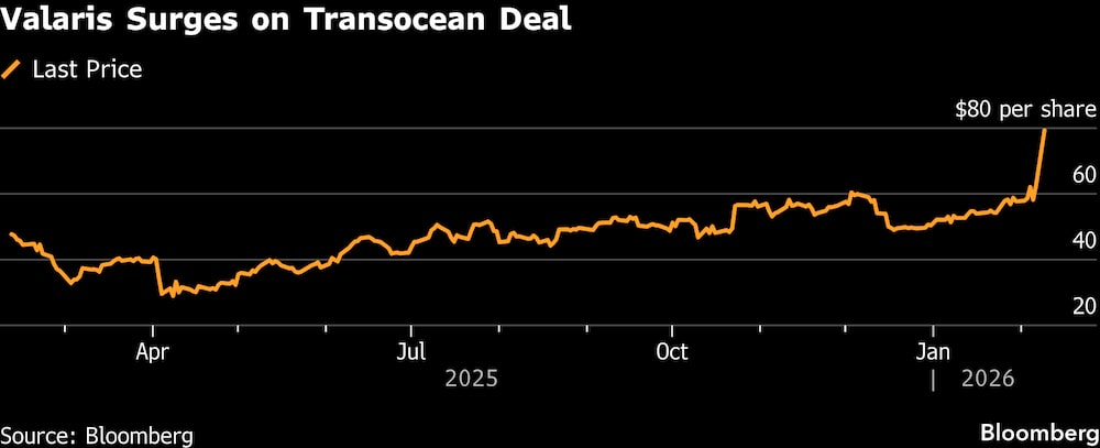 Os investidores da Valaris receberão 15,2 ações da Transocean para cada papel que possuírem — um prêmio de cerca de 32% em relação ao preço de fechamento de 6 de fevereiro.