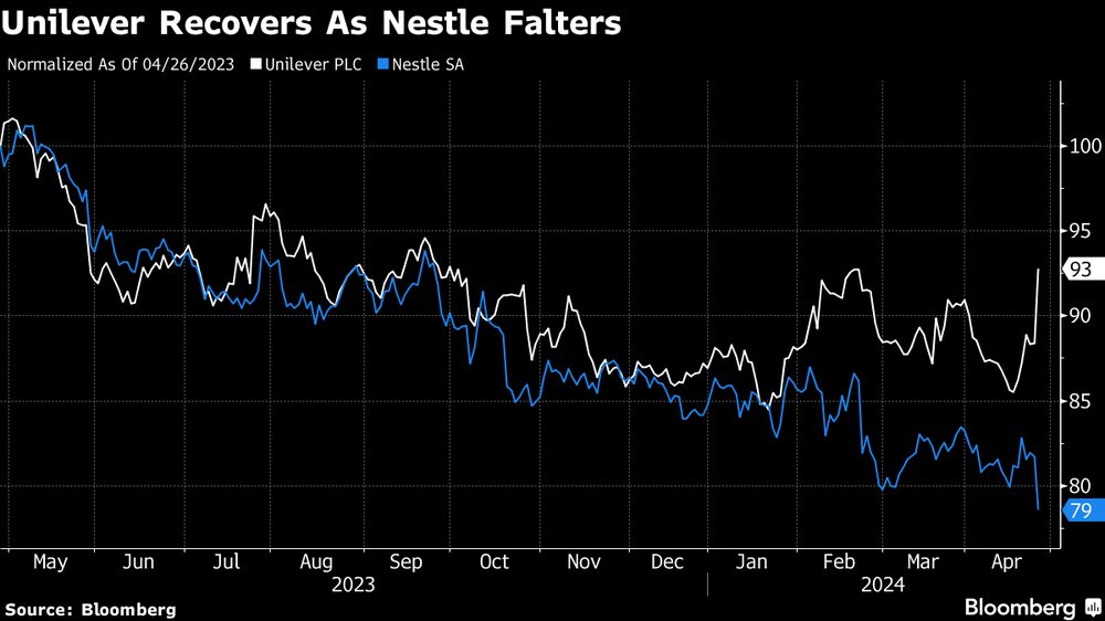 O CEO, Mark Schneider, recebeu o crédito por renovar a Nestlé, se desfazendo de marcas não essenciais para se concentrar em negócios de maior crescimento. Enquanto isso, a recuperação da Unilever parece estar se consolidando.