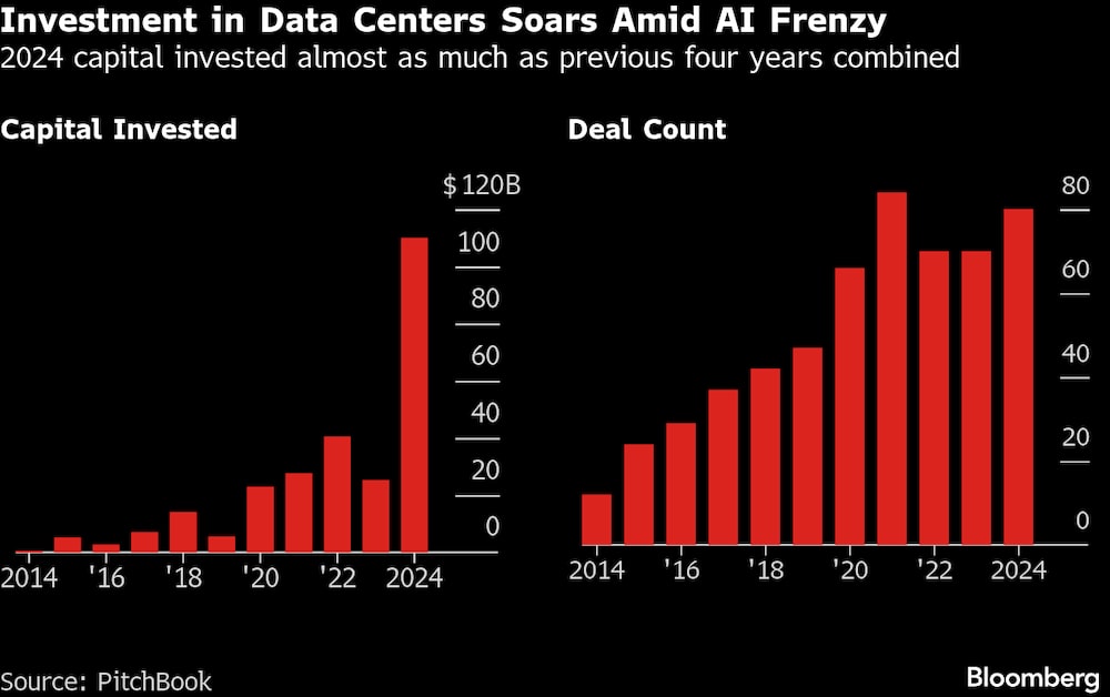 Até agora neste ano, ao menos US$ 175 bilhões em operações de crédito ligadas a data centers nos EUA foram fechados, segundo dados compilados pela Bloomberg News. Marks, da Oaktree, questiona os retornos oferecidos pela dívida vendida pelos hyperscalers para financiar investimentos em IA.